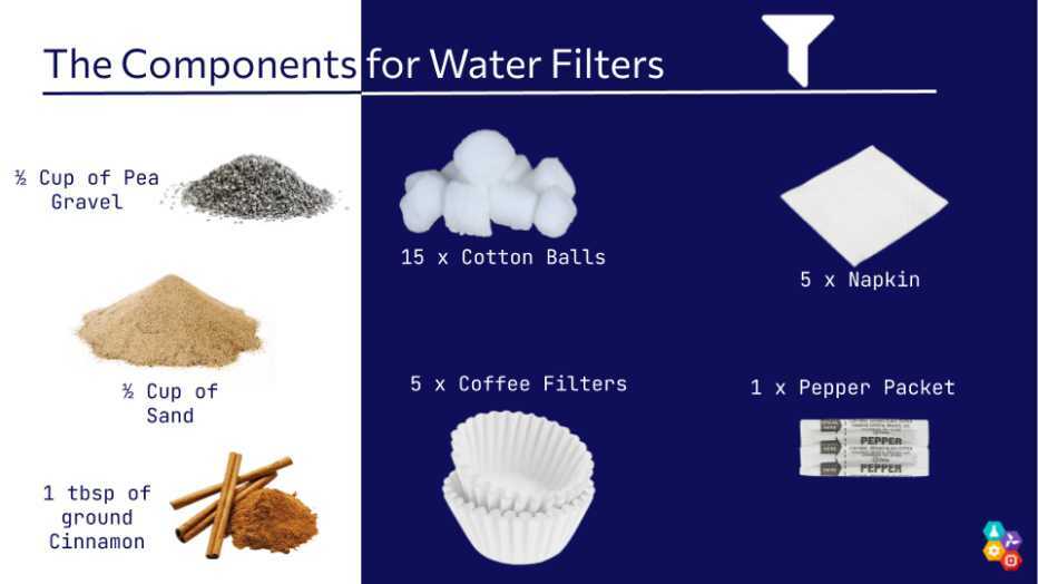 Students will learn about the water treatment process. By applying the fundamentals of wastewater treatment in order to design a small-scale filtration system, students will assess how effectively their designs produce “cleaner” water.