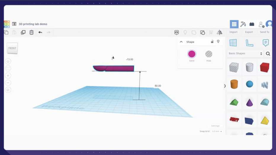 Students will learn about the different types of manufacturing, specifically the 3D printing process, and the implications it has in today’s society. After an introduction to Tinkercad, the design software the students will be using, they will have the design challenge of creating a puzzle with various-sized pieces that must fit into one another. This task will emphasize the importance of precise measurements. They will then have the opportunity to create their own design of their choosing.